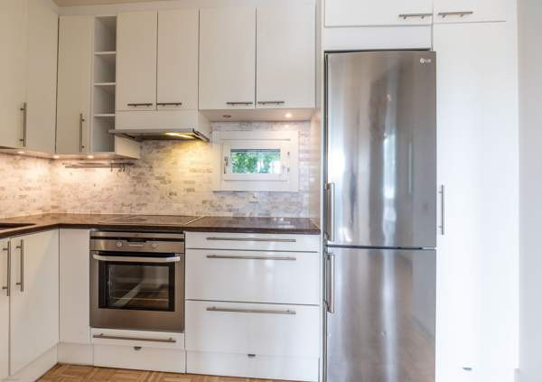 Näkinkaari 9 E 22, 02320 Espoo Tämä upea rivitalon päätyhuoneisto sijaitsee rauhallisella Laurinlahden alueella. Kävelymatkan päässä sijaitseva uusittu kauppakeskus Lippulaiva ja sen yhteydessä oleva metroasema takaavat kattavat palvelut sekä hyvät julkisen liikenteen yhteydet Laurinlahden alueelle. Taloyhtiö on hyvin hoidettu ja taloudellisesti vakaalla pohjalla. Korjaukset on tehty ajallaan ja isompia korjaustöitä ei ole suunnitteilla. Taloyhtiö siirtyi vuonna 2020 maalämpöön, joka on ekologista ja huomattavasti edullisempaa kuin fossiilisia polttoaineita käyttävät lämmitysmuodot. Alakerrassa asunnon sisäänkäynnin yhteydestä löytyy eteinen, jonka liukuovikaapissa on säilytystilaa ulkovaatteille. Alakerrasta on lisäksi tilava makuuhuone ja suuri vaatekaappi. Asunnossa on toimiva kylpyhuone, jossa on tummennetulla lasiseinällä ja pilarikiukaalla varustettu oma sauna. Jykevät portaat johtavat eteisestä yläkertaan, jossa sijaitsee valoisa olohuone yhdistettynä saumattomasti asunnon keittiöön. Keittiön ja olohuoneen välissä on tilaa ruokapöydälle. Yläkerran suuret ikkunat, joista avautuu kaunis näkymä talojen yli kohti läheistä merenlahtea yhdistettynä korkeaan huonekorkeuteen tekevät tilasta avaran ja valoisan. Huoneistolla on myös aidattu piha lautaterassilla, josta löytyy tilaa niin ulkokalusteille kuin istutuksillekin. Asuntoon kuuluu lisäksi autokatospaikka sekä tilava ulkovarasto. Tämä koti hurmaa uniikeilla yksityiskohdilla, jotka täytyy kokea paikan päällä! Olethan yhteydessä matalalla kynnyksellä jos sinulla on kysyttävää tai haluat sopia näytön kohteessa.